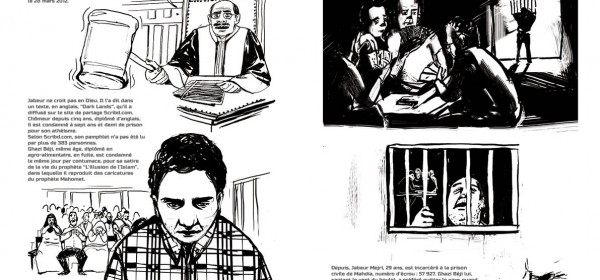 Les malheurs de Jabeur Mejri et l’acharnement de la justice tunisienne à son encontre se poursuivent. Le numéro 3 de Gibraltar a raconté son histoire en BD, un récit dessiné sur 31 pages de Sofiya Vosnaya avec un scénario du journaliste Thibaut Cavaillès avec talent et sensibilité.
