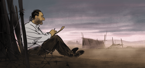 Découvert sur le tard, Bartoli laisse un témoignage exceptionnel, sous la forme de dessins et de crayonnés, sur le sort des républicains espagnols dans les camps d’internement français, après leur cruelle défaite face aux armées du général Franco en février 1939, durant la Retirada (la retraite en espagnol). L’État français interne et parque à même le sable des plages du Roussillon des dizaines de milliers d’Espagnols, traités comme “étrangers indésirables” fuyant la répression franquiste à Argelès-sur-Mer, Saint-Cyprien, Le Barcarès… Dans les camps règnent la faim, le froid, les maladies, l’injustice, sous la garde des gendarmes et de tirailleurs africains, guère à leur avantage dans ses féroces caricatures et aussi dans le film d’Aurel. D’autres camps tout aussi sordides vont ensuite ouvrir : Rivesaltes, Agde, Bram, Setfonds, Gurs, Le Vernet d’Ariège… Les internés sont également utilisés comme travailleurs forcés dans les Compagnies de travailleurs étrangers (CTE) dans de grands chantiers, comme main-d’œuvre corvéable, tels des prisonniers de guerre.