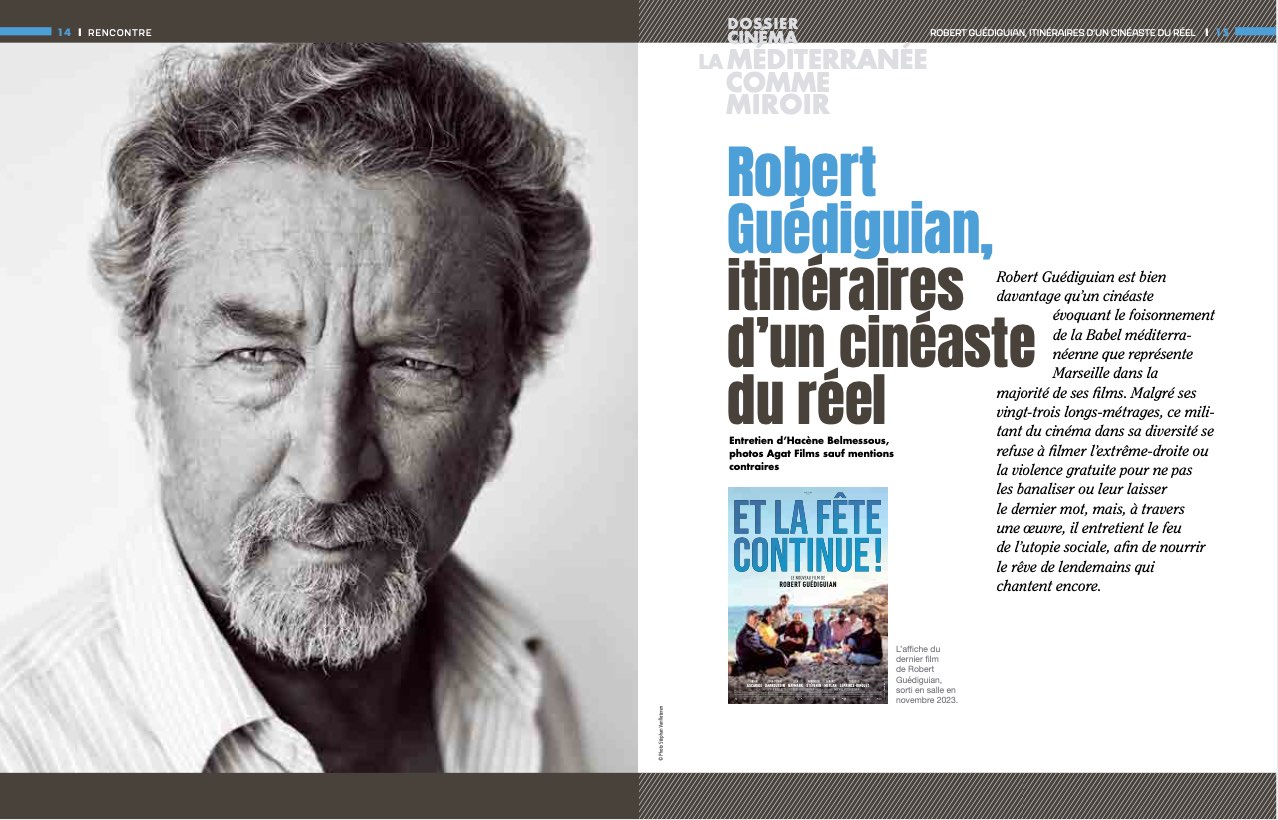 • Robert Guédiguian, Itinéraires d’un cinéaste du réel. Ce militant du cinéma entretient le feu de l’utopie sociale afin de nourrir le rêve de lendemains qui chantent encore. Entretien d’Hacène Belmessous.