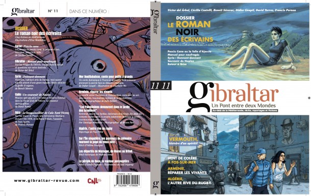 Gibraltar est de retour avec une carte blanche autour du roman noir avec cinq écri-vains qui tissent le dossier de cette onzième saison. Pas de meurtres sordides ou de policiers à la recherche d’un tueur en série mais une autre façon de regarder ce genre – le “noir” – sous le prisme humain, social, des mondes méditerranéens. Interrogations métaphysiques et intemporelles avec le grand romancier espagnol Víctor del Árbol; trafic d’organes et décomposition sociale en Syrie avec Benoît Séverac ; évocation de la folie et d’un mystérieux poisson en Corse avec Cécilia Castelli ; récréation mafieuse et visite des splendeurs de Naples avec David Torres. Enfin, Francis Pornon nous trans- porte à Ibiza, pour une enquête express sur les pas d’une milicienne libertaire et de Raoul Villain, l’assassin de Jean Jaurès, en août 1936 durant la guerre d’Espagne…