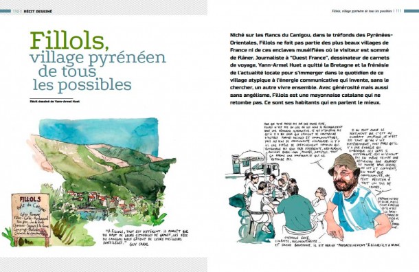 Niché sur les flancs du Canigou, dans le tréfonds des Pyrénées-Orientales, Fillols ne fait pas partie des plus beaux villages de France ni de ces enclaves muséifiées où le visiteur est sommé de flâner. Journaliste à “Ouest France”, dessinateur de carnets de voyage, Yann-Armel Huet a quitté la Bretagne et la frénésie de l’actualité locale pour s’immerger dans le quotidien de ce village atypique à l’énergie communicative qui invente, sans le chercher, un autre vivre ensemble. Avec énergie, générosité mais aussi sans angélisme, Fillols est une mayonnaise catalane qui ne retombe pas. Ce sont ses habitants qui en parlent le mieux.