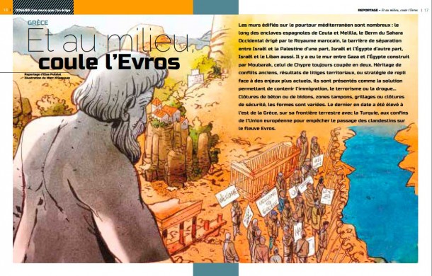 Les murs édifiés sur le pourtour méditerranéen sont nombreux : le long des enclaves espagnoles de Ceuta et Melilla, le Berm du Sahara Occidental érigé par le Royaume marocain, la barrière de séparation entre Israël et la Palestine d’une part, Israël et l’Égypte d’autre part, Israël et le Liban aussi. Il y a eu le mur entre Gaza et l’Égypte construit par Moubarak, celui de Chypre toujours coupée en deux. Héritage de conflits anciens, résultats de litiges territoriaux, ou stratégie de repli face à des enjeux plus actuels, ils sont présentés comme la solution permettant de contenir l’immigration, le terrorisme ou la drogue… Clôtures de béton ou de bidons, zones tampons, grillages ou clôtures de sécurité, les formes sont variées. Le dernier en date a été élevé à l’est de la Grèce, sur sa frontière terrestre avec la Turquie, aux confins de l’Union européenne pour empêcher le passage des clandestins sur le fleuve Evros.