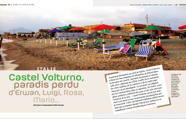 À quarante kilomètres au nord de Naples, Castel Volturno s’étend sur une vingtaine de kilomètres de littoral dans la province de Caserte. Autrefois luxuriante et vivante, cette terre, délaissée par l’État, souffre de la mainmise des clans mafieux de la Camorra et de la mafia nigériane qui s’y est développée. Ce territoire défiguré par les constructions vides et squattées, les trafics, scandales sanitaires, pollution des eaux et des sols ainsi que l’avancée de la mer, survit non sans mal à son passé et aux mouvements de population qui le traversent et y habitent. Cette cité balnéaire délabrée séduit encore ceux qui y venaient durant l’été de leur enfance et se considèrent comme d’authentiques résistants.