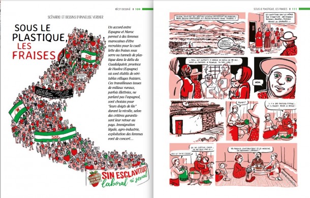 Un accord entre Espagne et Maroc permet à des femmes marocaines d’être recrutées pour la cueillette des fraises sous serre ou tunnels de plastique dans le delta du Guadalquivir, province de Huelva (Espagne) où sont établis de véritables villages fraisiers. Ces travailleuses issues de milieux ruraux, parfois illustrées, ne parlant pas l’espagnol, sont choisies pour leurs “doigts de fée” durant la récolte, selon des critères garantissant leur retour au pays. Immigration légale, agro-industrie, exploitation des femmes vont de concert…