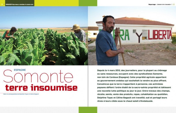 Depuis le 4 mars 2012, des journaliers, pour la plupart au chômage ou sans ressources, occupent avec des syndicalistes Somonte, non loin de Cordoue (Espagne). Cette propriété agricole appartient au gouvernement andalou qui souhaitait la vendre au plus offrant. Convaincus que la terre n’appartient à personne, ces activistes paysans défient l’ordre établi de la sacro-sainte propriété et bâtissent une nouvelle lutte politique au jour le jour. Entre travaux des champs, récolte, semis, vente des produits, repas, cohabitation au quotidien, Delphine Tayac et Céline Bagault ont travaillé, sué et partagé leurs rêves à leurs côtés sous le chaud soleil d’Andalousie.