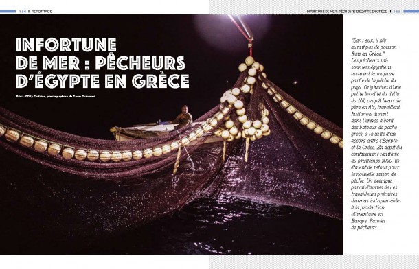 “Sans eux, il n’y aurait pas de poisson frais en Grèce”. Les pêcheurs saisonniers égyptiens assurent la majeure partie de la pêche du pays. Originaires d’une petite localité du delta du Nil, pêcheurs de pères en fils, ils travaillent huit mois durant dans l’année à bord des bateaux de pêche grecs, à la suite d’un accord bilatéral entre l’Égypte et la Grèce. Malgré le confinement sanitaire du printemps 2020, ils étaient de retour pour la nouvelle saison de pêche. Un exemple parmi d’autres de ces travailleurs précaires devenus indispensables au marché agroalimentaire européen.