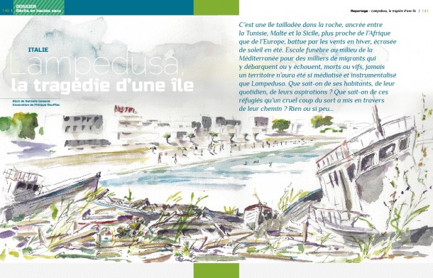 C’est une île tailladée dans la roche, ancrée entre la Tunisie, Malte et la Sicile, plus proche de l’Afrique que de l’Europe, battue par les vents en hiver, écrasée de soleil en été. Escale funèbre au milieu de la Méditerranée pour des milliers de migrants qui y débarquent ou y échouent, morts ou vifs, jamais un territoire n’aura été si médiatisé et instrumentalisé que Lampedusa. Que sait-on de ses habitants, de leur quotidien, de leurs aspirations ? Que sait-on de ces réfugiés qu’un cruel coup du sort a mis en travers