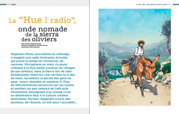 Alejandro Pérez, journaliste au chômage, a imaginé une radio itinérante, bricolée, qui prend le temps de rencontrer, de raconter. Microphone en main, ce jeune cinéaste à la fine barbe traverse les villages de son enfance, dans la Sierra Sur de Jaén (Andalousie), hissé sur une carriole ou à dos de mule, recueillant la parole des gens du pays : sueur, abandon et système D. Plus de 400 kilomètres parcourus sur les routes et sentiers au pas cadencé de Café puis d’Antonella, témoignant d’un monde rural en déshérence face à la culture urbaine dominante. Partout, Alejandro trouve des soutiens, de l’écoute, un toit pour l’accueillir…