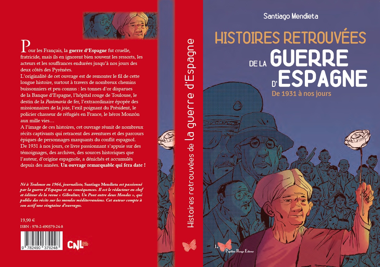 Livre Histoires de la guerre d’Espagne, de 1931 à nos jours de Santiago Mendieta (Le Papillon Rouge Éditeur, 352 pages), avec en cadeau le numéro 2 de la revue Gibraltar avec des thématiques espagnoles : les fosses du franquisme, les bébés volés ou la tragédie du port d’Alicante en mars 1939 avec une bande dessinée de Bruno Loth et d’autres sujets autour de l’Espagne et des mondes méditerranéens.